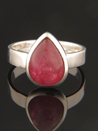 This Sterling Silver ring features a teardrop shaped Pink Tourmaline (Rubellite) cabochon.