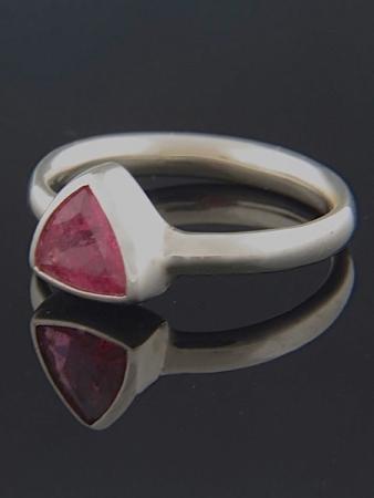 This Sterling Silver ring features a trillion shape faceted Pink Tourmaline stone.