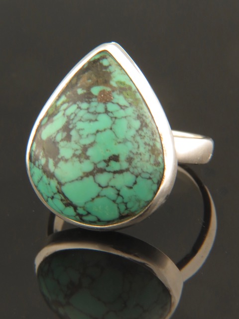 This Sterling Silver ring features a teardrop shaped Turquoise cabochon.