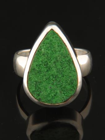 This Sterling Silver ring features a teardrop shaped, natural Uvarovite Garnet crystal cluster.