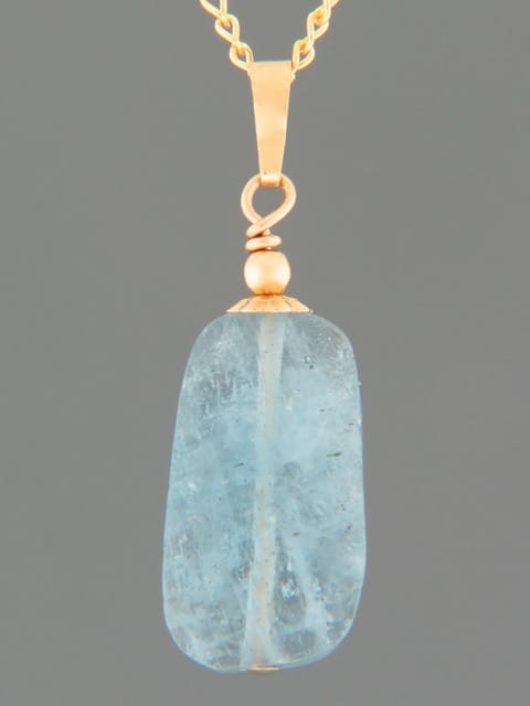 A pendant featuring a hand faceted, free form Aquamarine stone with 14ct Gold fittings.