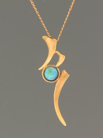 This Gold Vermeilpendant features a New Zealand Blue Pearl grown in the local Paua shellfish showing green and blue colours.