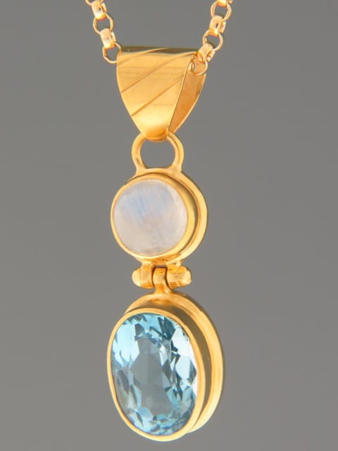 Blue Topaz & Moonstone Pendant – Gold Vermeil – BT419GV