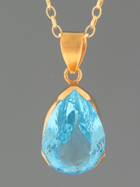 This Gold Vermeilpendant features a faceted teardrop shaped Blue Topaz stone.