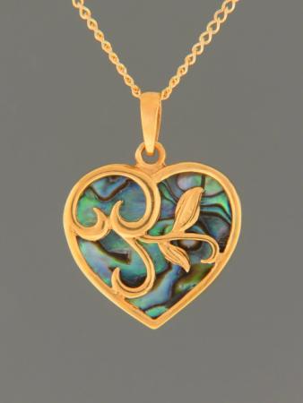 This Gold Vermeilpendant features New Zealand Paua Shell in a heart design. This pendant is open at the back and reversible to show just polished Paua Shell.