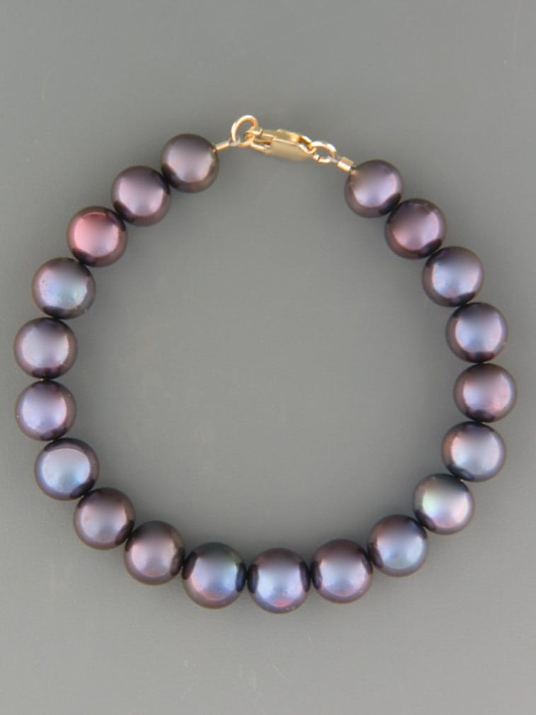 10mm dark Pearl Bracelet with Gold clasp – YD10B