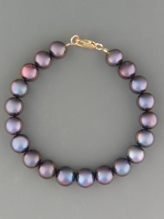 10mm dark Pearl Bracelet with Gold clasp - YD10B
