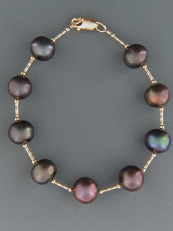 A bracelet featuring dark Pacific Pearls with gold beads.