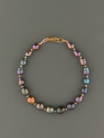 This bracelet features dark Baroque (irregularly shaped) Pearls with 2mm round Gold beads.