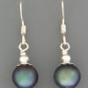 A drop style earring featuring dark Pacific Pearls with gold beads.