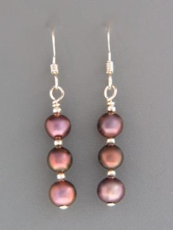 A drop style earring featuring dark Pacific Pearls with Sterling Silver beads.