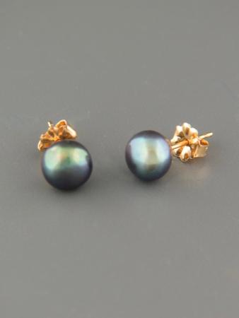 A 14ct Gold Filledstud style earring featuring dark Pacific Pearls.