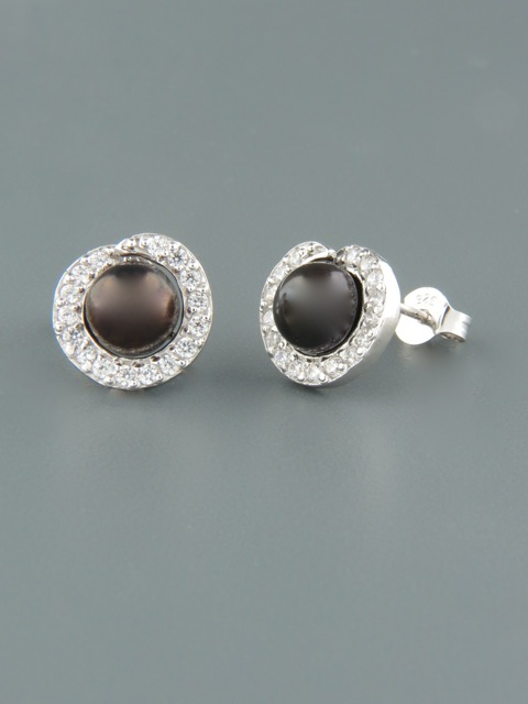 6mm dark Pearl stud Earrings with Zircon – Sterling Silver – Y501