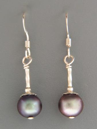 A drop style earring featuring dark Pacific Pearls with Sterling Silver beads.
