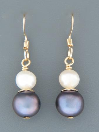 These Gold drop style earrings feature dark and white Pacific Pearls.