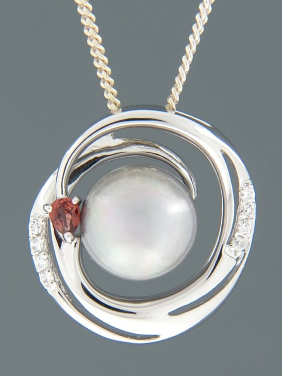 Pacific Pearl Pendant with Garnet & Zircon – Sterling Silver – Y443