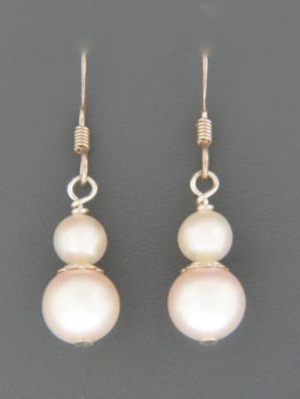 These Sterling Silver drop style earrings feature round White Pacific Pearls with Sterling Silver beads.