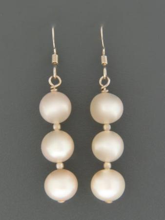 These Sterling Silver drop style earrings feature round White Pacific Pearls with Sterling Silver beads.