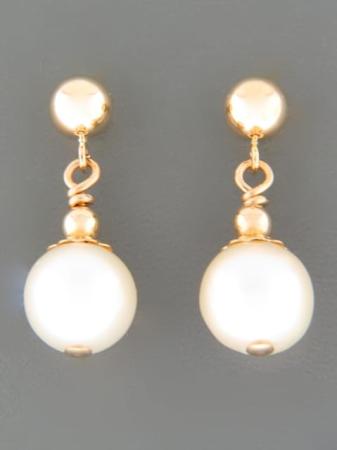 These drop style stud earrings feature round white Pacific Pearls with Gold beads.