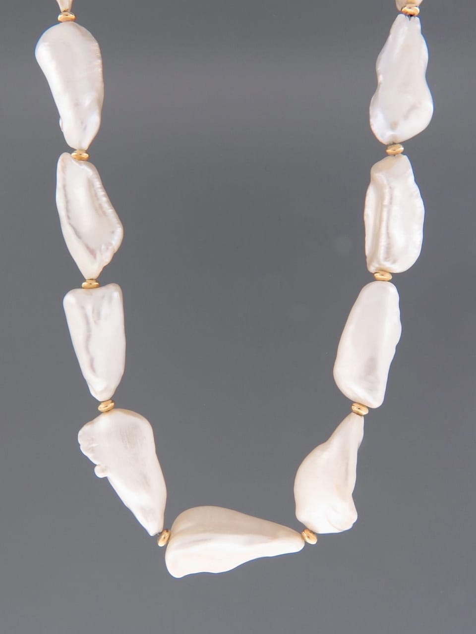 This necklace consists of large white Baroque Pacific Pearls with 9ct Gold beads.