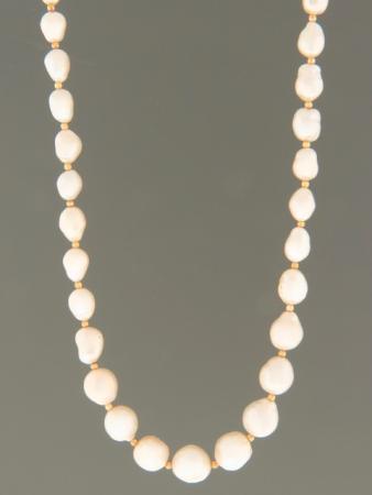 This necklace features white Baroque (irregularly shaped) Pearls with 2mm round Gold beads.